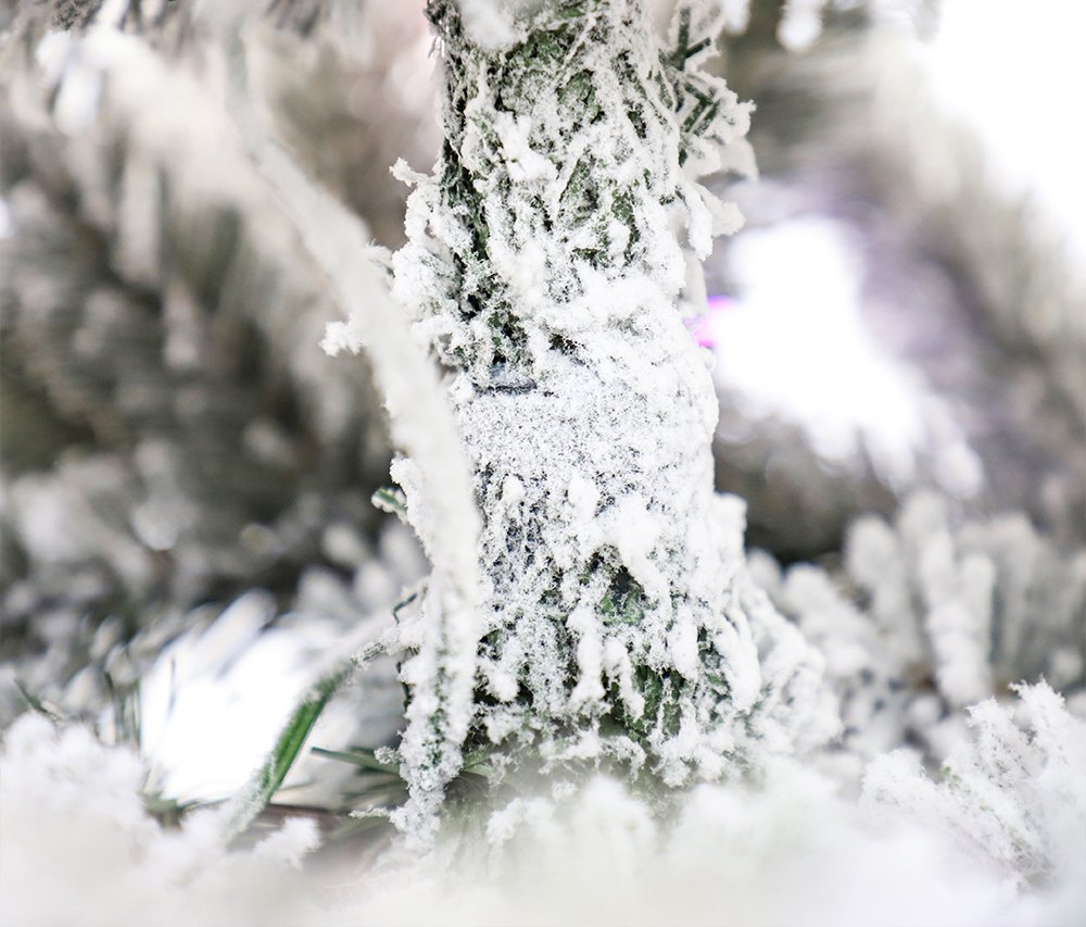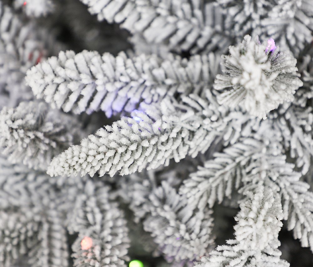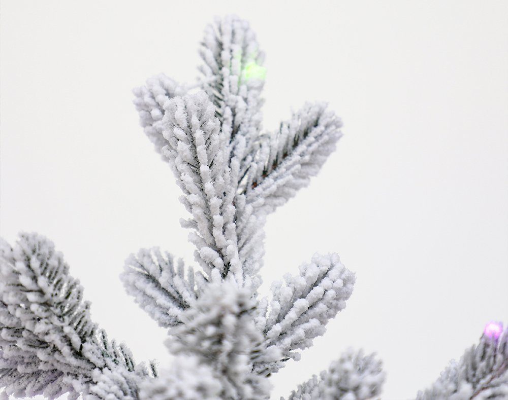 Роскошная новогодняя красавица с флокированной хвоей и встроенной подсветкой создаст неповторимую атмосферу праздника в вашем доме.
