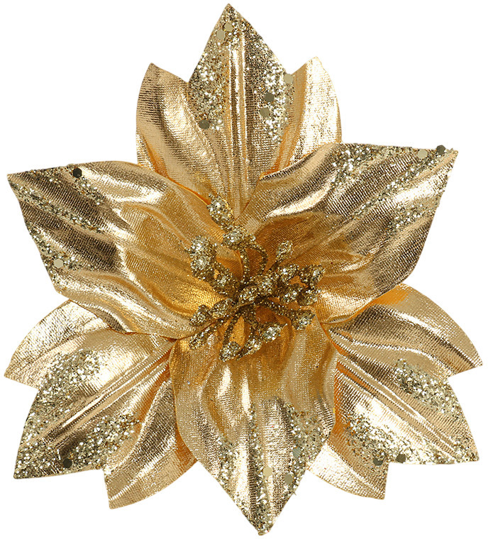 Позвольте вашему дому заиграть новыми красками с изысканным декоративным цветком в благородном золотом исполнении. Компактные размеры делают его универсальным украшением, а переливы золотого оттенка создают ощущение настоящего зимнего чуда.