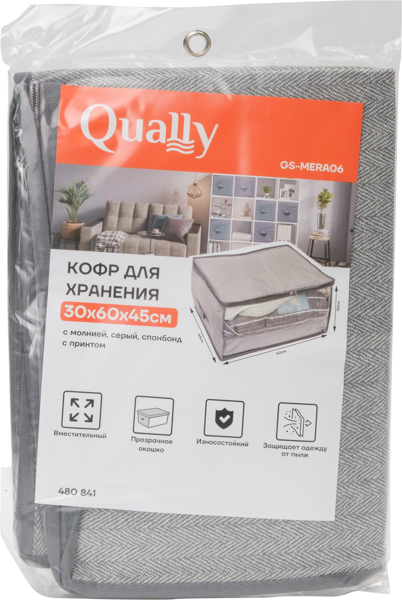 - Кофр д/хранения Qually 30х60х45см с молнией, с принтом, серый, спанбонд