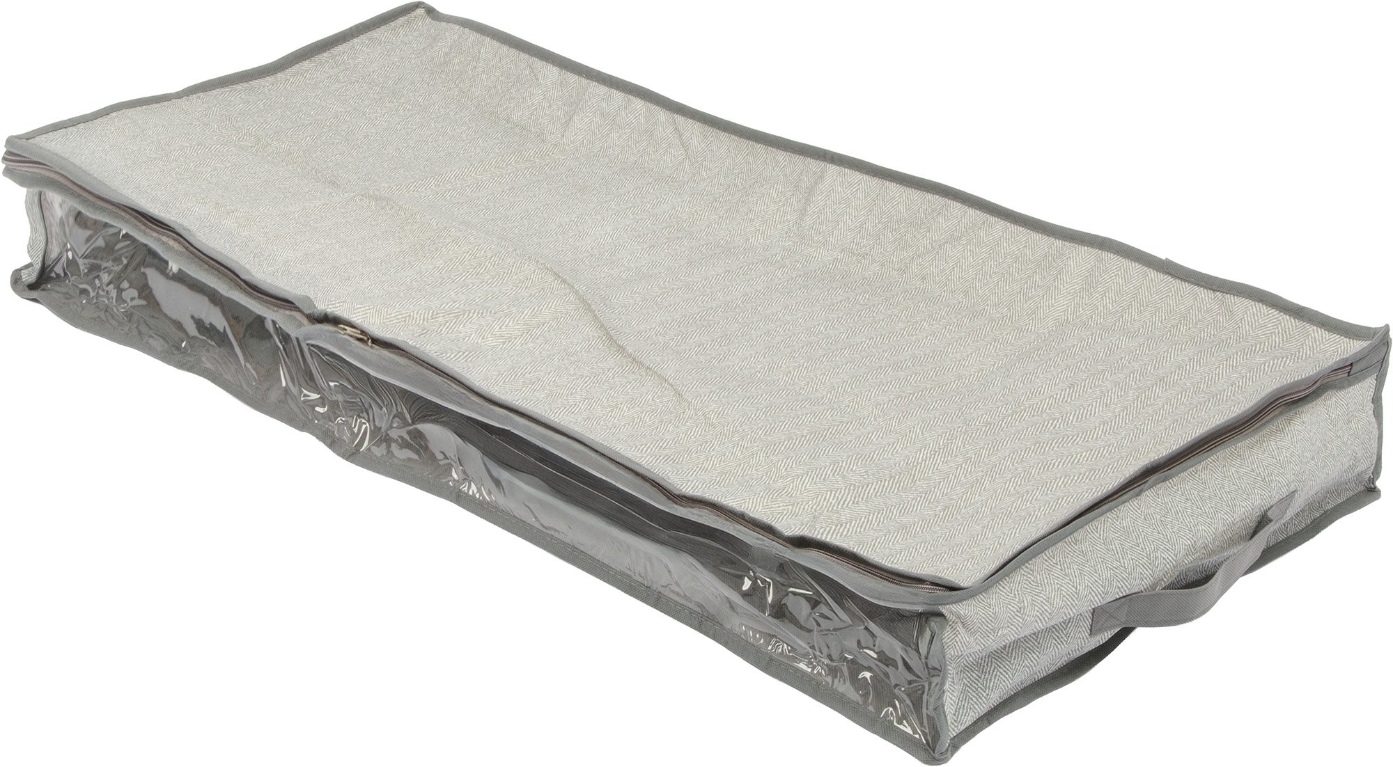 Кофр д/хранения подкроватный Qually 15х100х45см с молнией, с принтом, серый, спанбонд