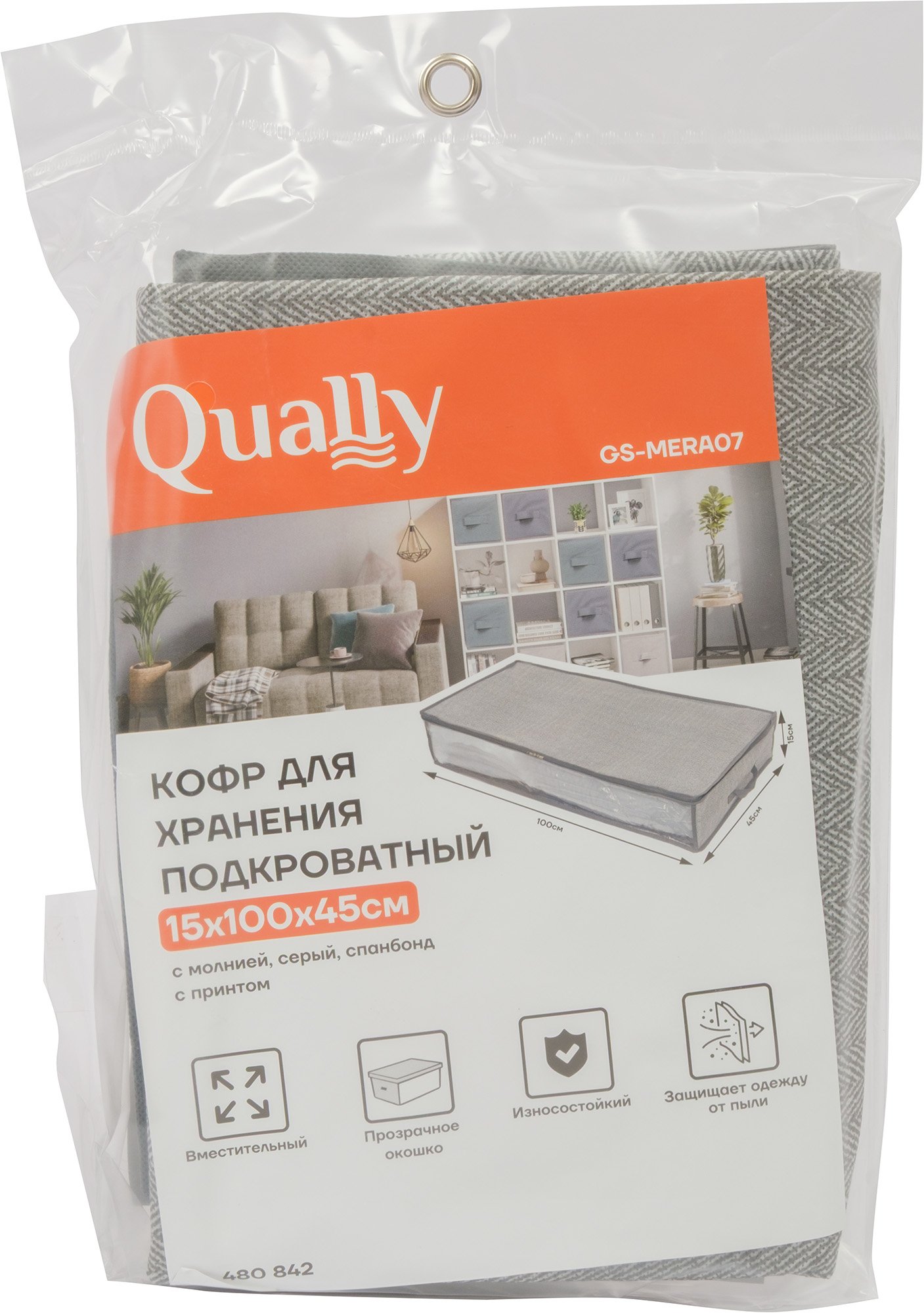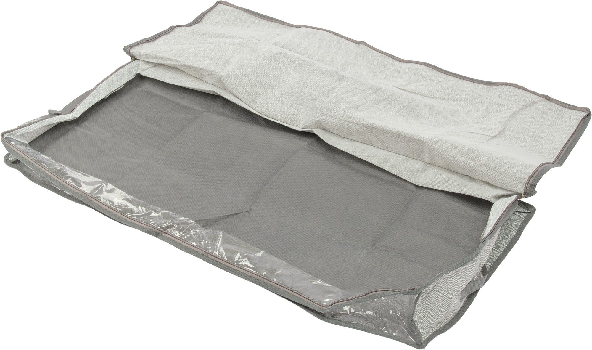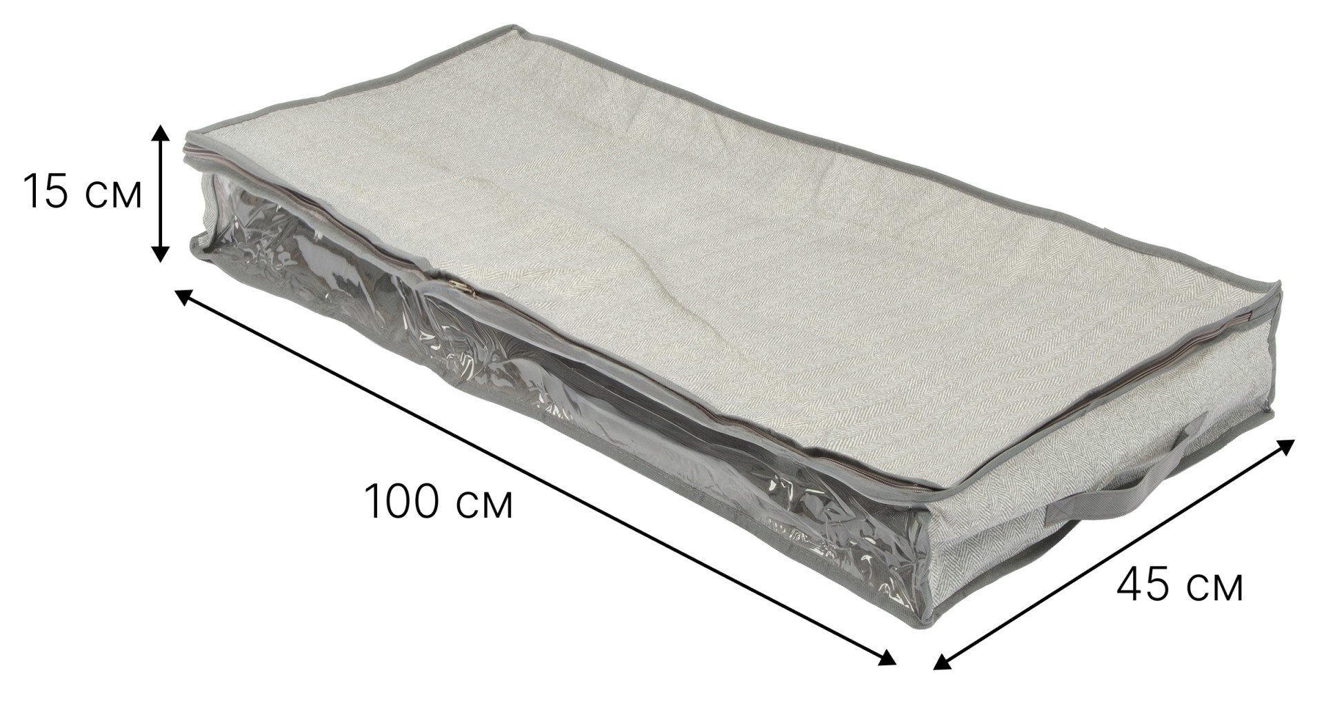 - Кофр д/хранения подкроватный Qually 15х100х45см с молнией, с принтом, серый, спанбонд