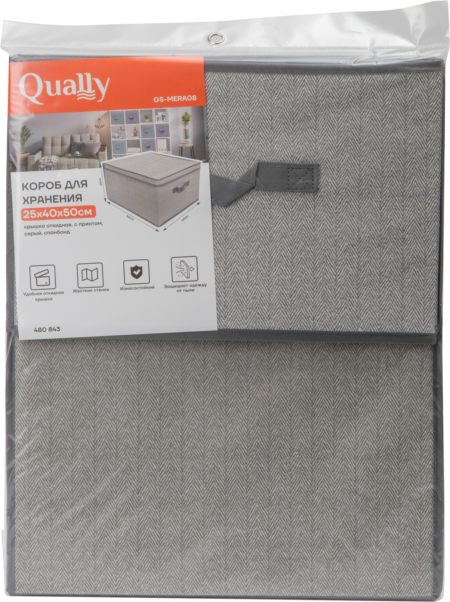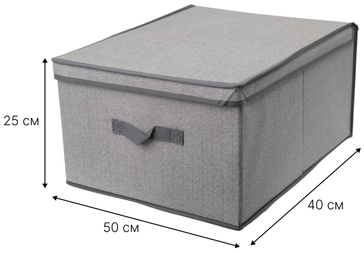 - Короб д/хранения Qually 25х40х50см крышка откидная, с принтом, серый, спанбонд