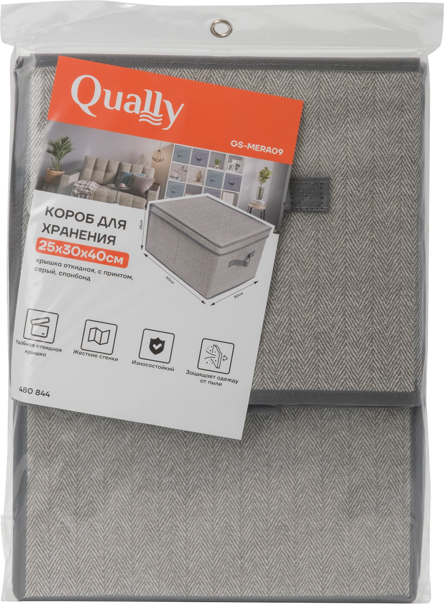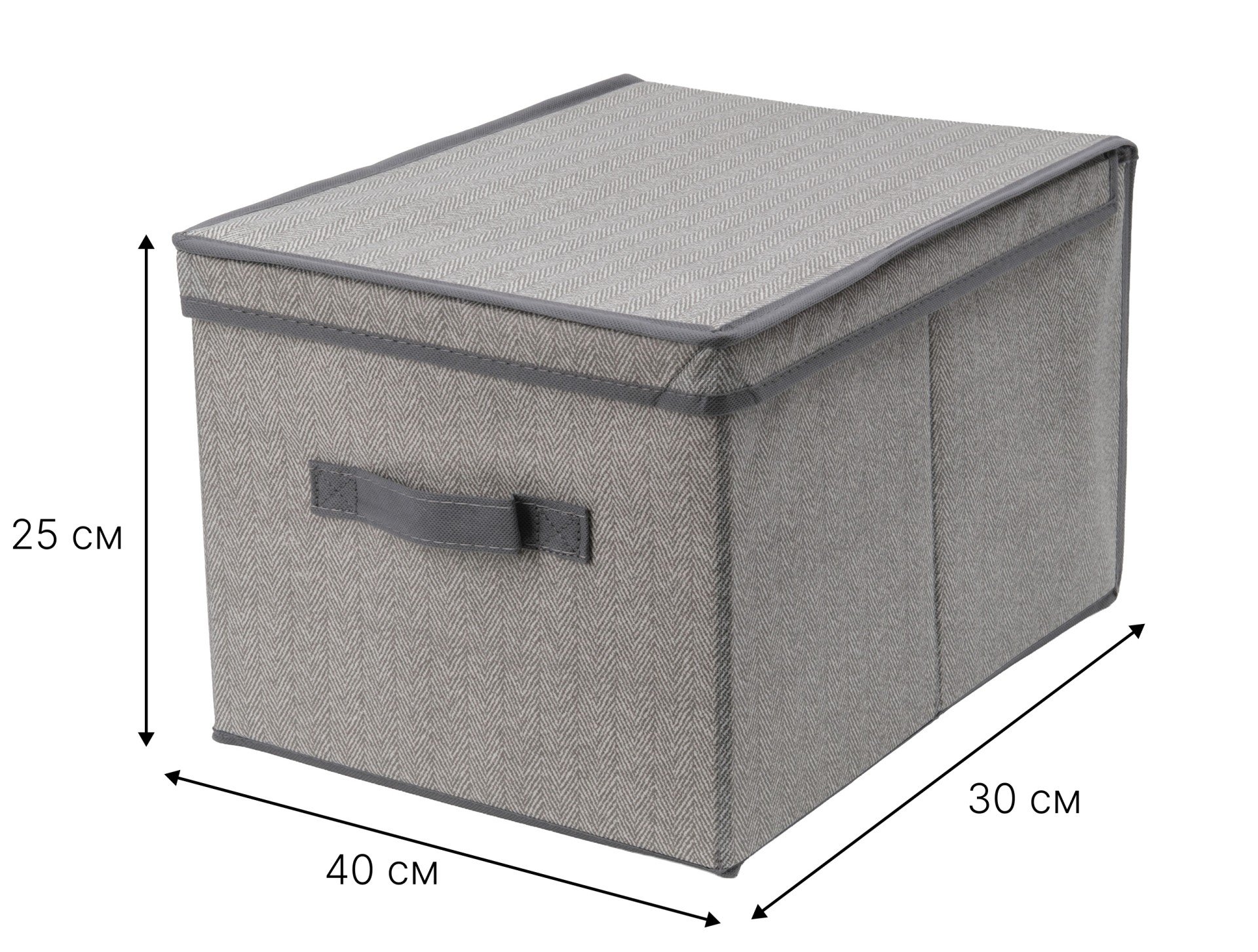- Короб д/хранения Qually 25х30х40см крышка откидная, с принтом, серый, спанбонд