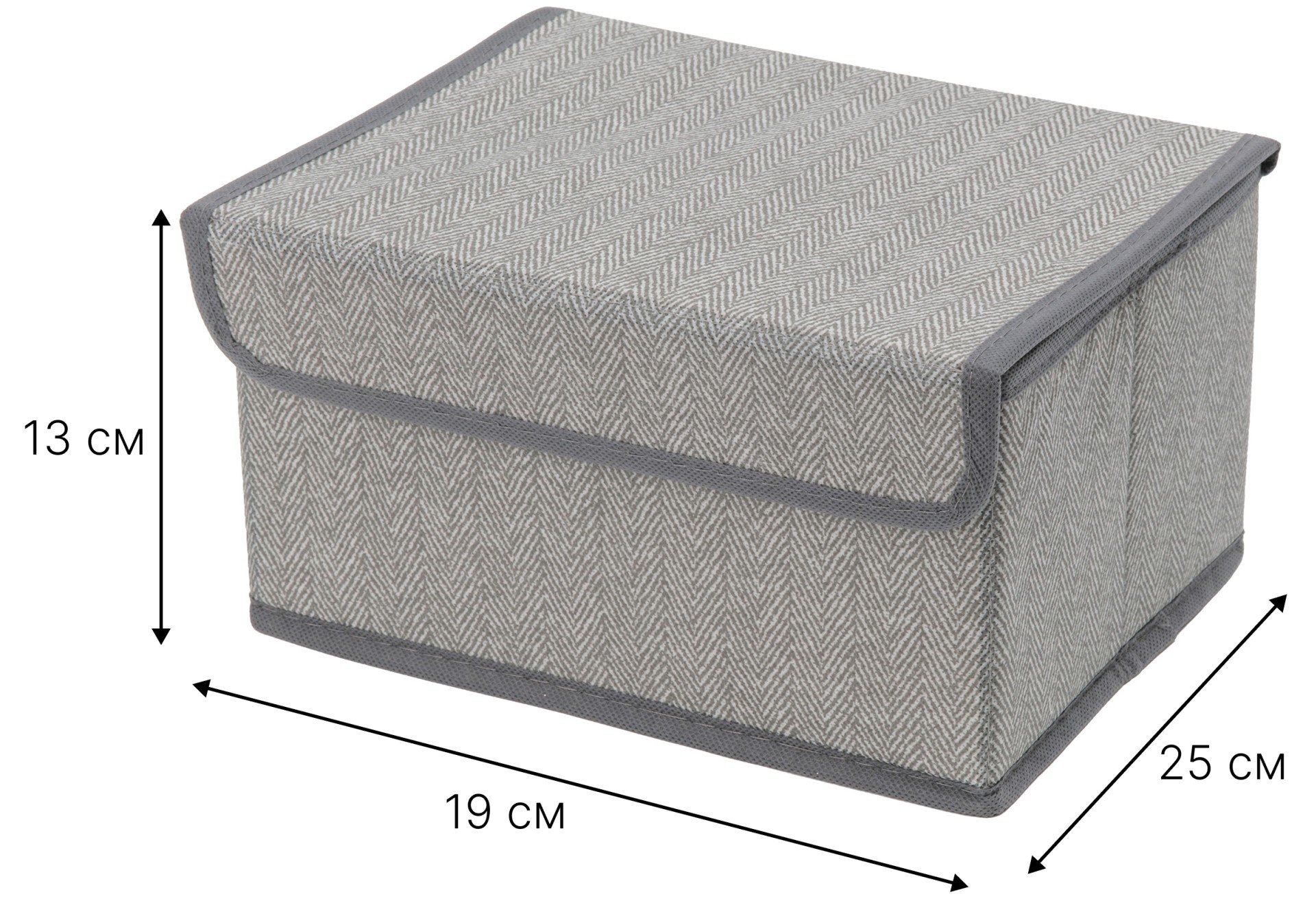Короб д/хранения Qually 13х25х19см крышка откидная на липучке, с принтом, серый, спанбонд