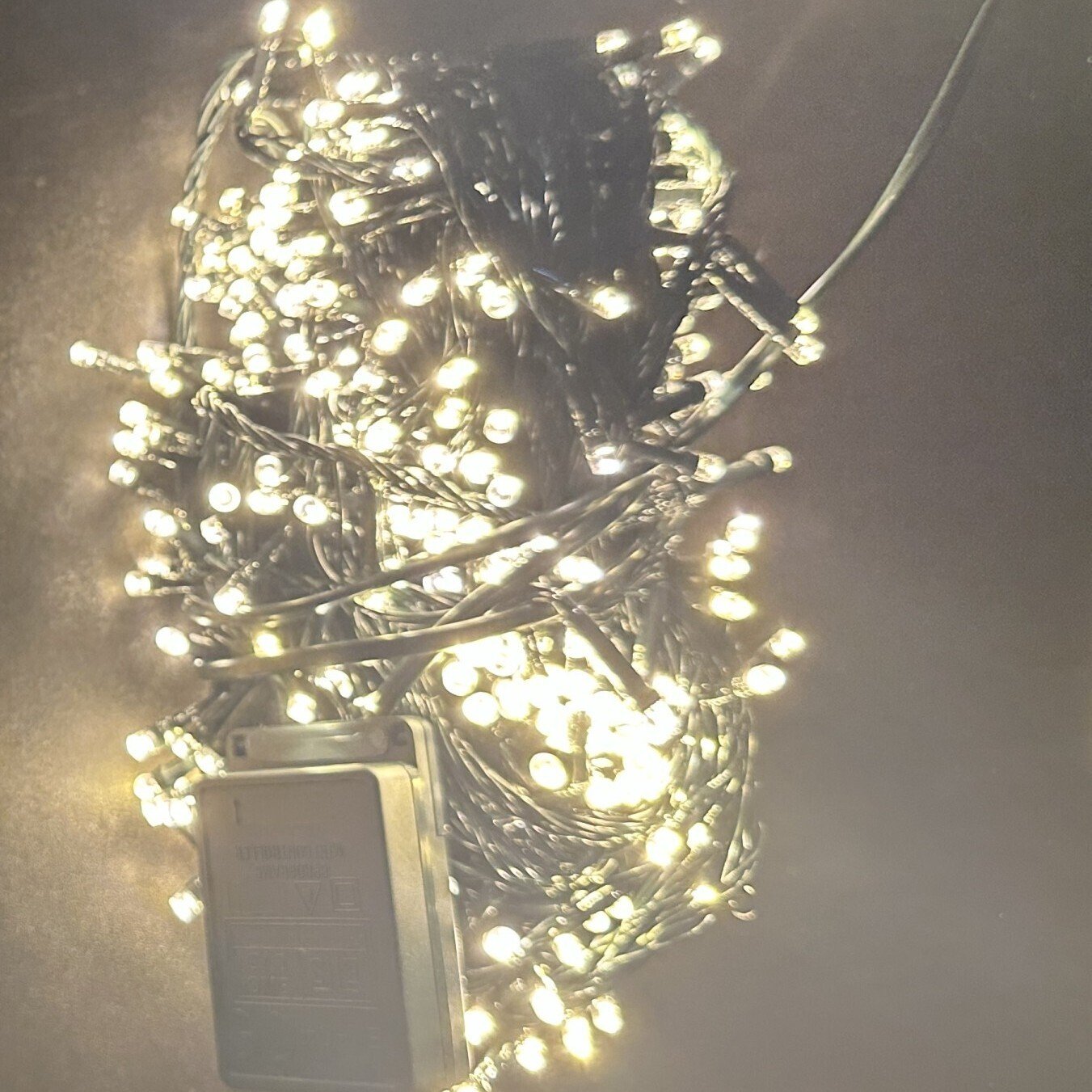 - Электрогирлянда внутренняя Нить 20м 200LED, теплый белый, 8 режимов, темно-зеленый кабель