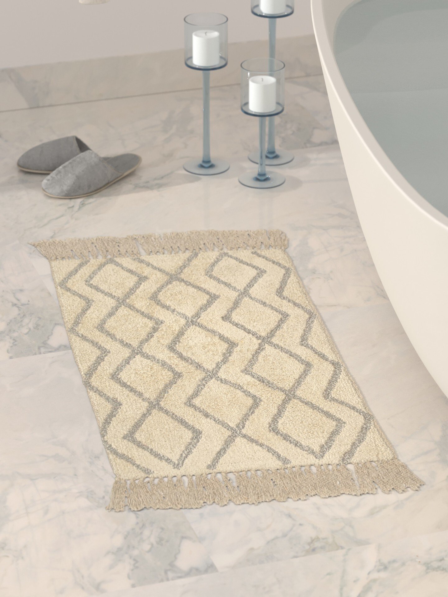 - Коврик для ванной комнаты 50х80см, Zenfort Прованс Изгибы с кистями, хлопок, серый