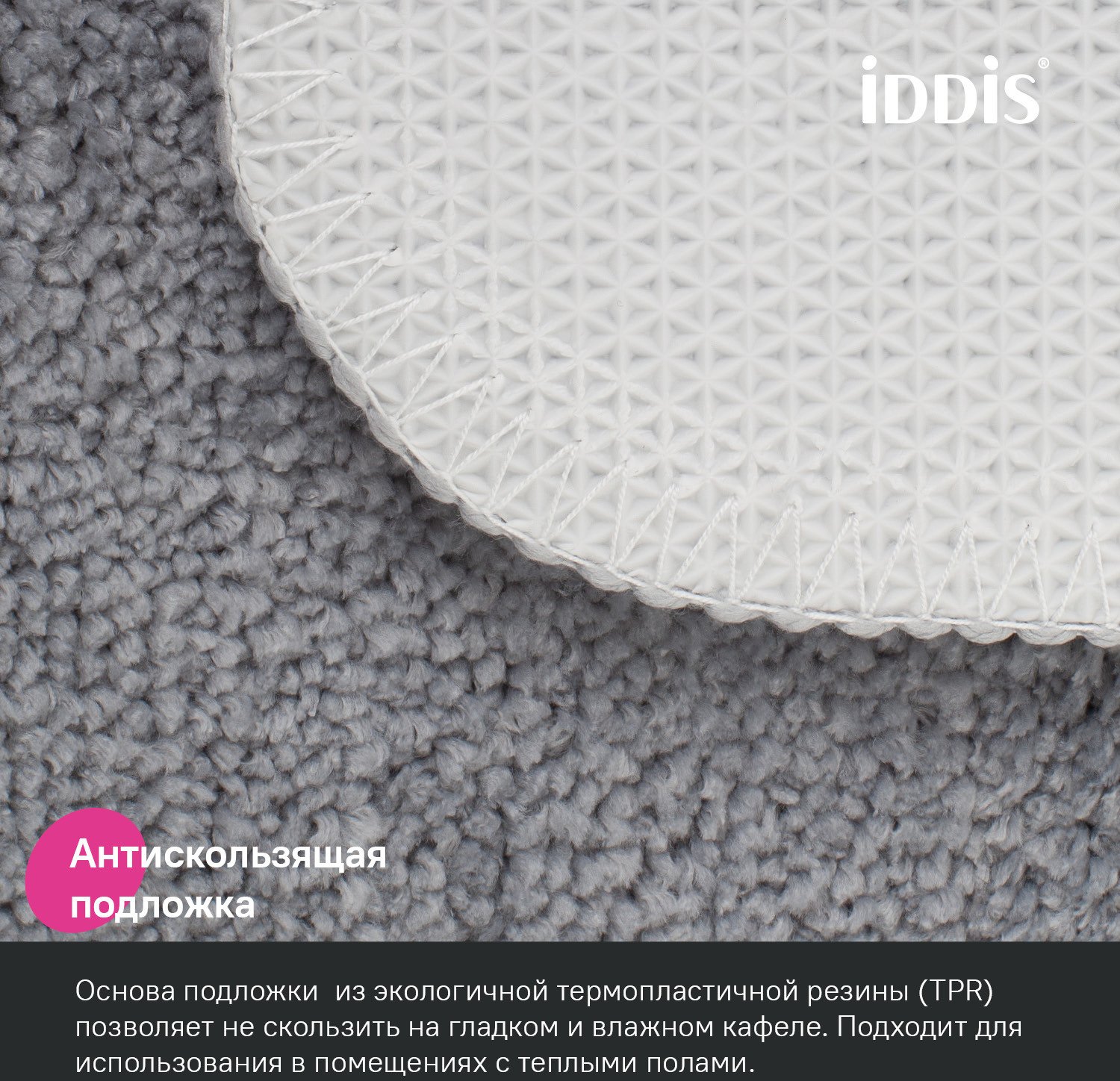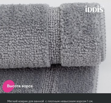 - Коврик для ванной комнаты 65х45см IDDIS, PSQS06Mi12 микрофибра, серый