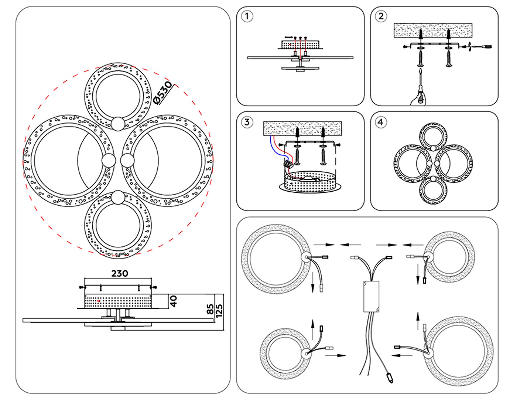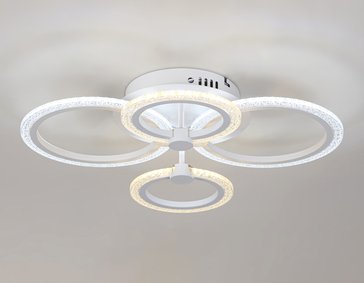Современный потолочный светодиодный светильник, коллекция ACRYLICA. Модель FA4061 представлена в современном стиле Неоклассика. Светильник выполнен в белом цвете, круглой формы, состоит из 4 акриловых плафонов на металлическом каркасе. Эта модель оснащена встроенными светодиодами, благодаря чему вы забудете о замене дополнительных ламп. Так же с помощью инфракрасного пульта вы сможете регулировать цветовую температуру, яркость освещения и ночной режим. Данная модель подходит для натяжных потолко