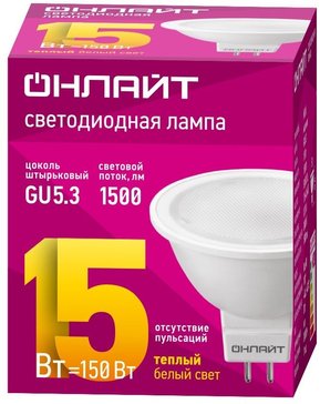 - Лампа светодиодная Онлайт 15Вт GU5.3 3000К свет теплый
