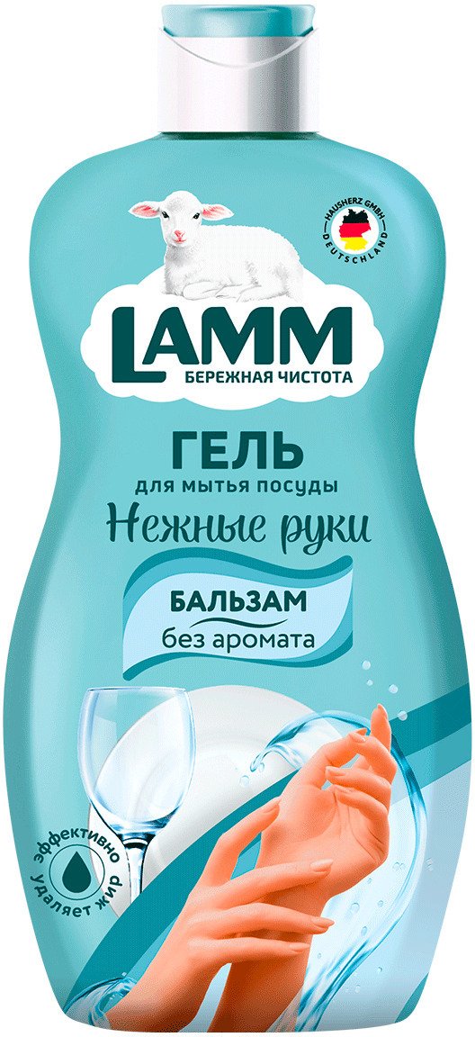 Благодаря специальной формуле средства для мытья посуды LAMM эффективно и быстро справляются с жиром, отмывают посуду даже в холодной воде, заботятся о коже рук, без аромата.