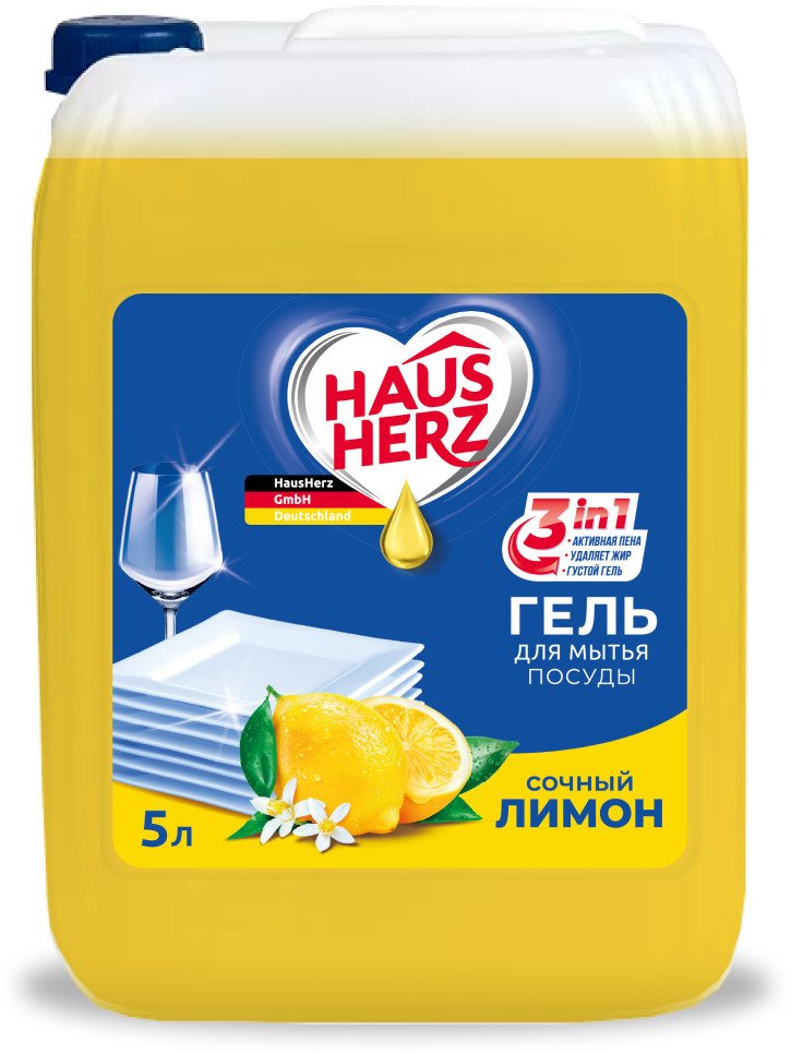- Средство д/мытья посуды Haus Herz 5л Сочный лимон
