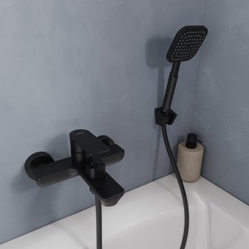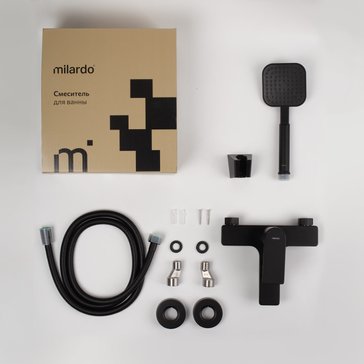 - Смеситель для ванны Milardo Maze MAZBL00M02 чёрный матовый в комплекте с душевыми аксессуарами