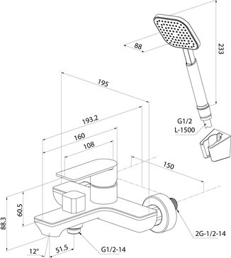 • Душевая лейка с держателем, душевой шланг в тон (1,5 м) и крепеж идут в комплекте. Поворотный дивертор работает при любом давлении воды, переключая поток воды с излива на душевую лейку.