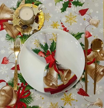 Представьте, как обычный стол превращается в сказочную поляну, украшенную изящными морозными узорами. Натуральная хлопковая ткань и изысканный зимний принт создают неповторимую атмосферу уюта и праздничного настроения — будь то семейный ужин или торжественное застолье.