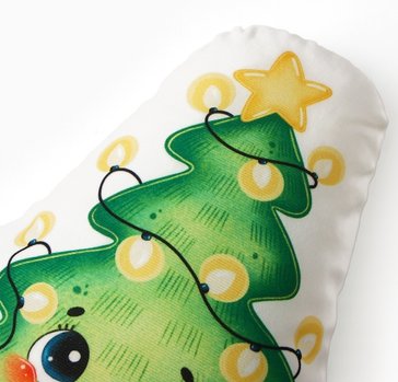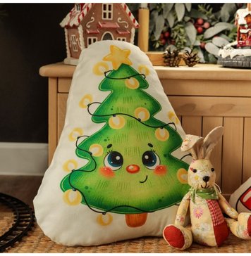 Подушка служит уютным элементом интерьера и подходит для оформления диванов, кресел, пуфов и других мест отдыха. Может стать приятным подарком к зимним праздникам или частью праздничного декора — например, в детской комнате, гостиной или фотозоне. После праздников остаётся уместной в интерьере благодаря сдержанной бело‑зелёной гамме, ассоциирующейся с зимними мотивами.