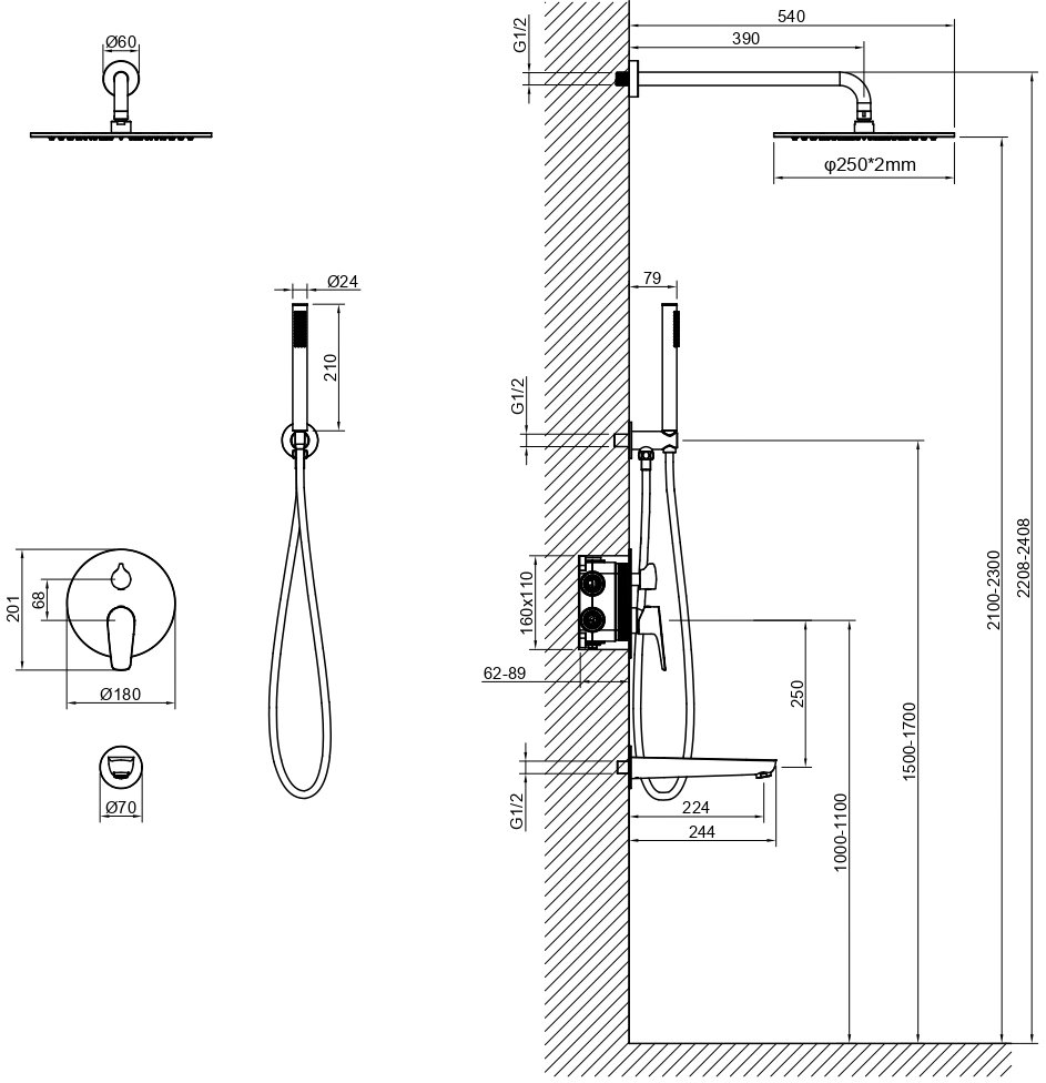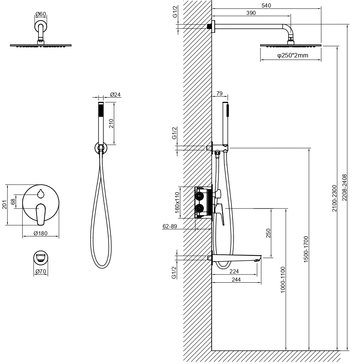 • Размер верхнего душа (см): 25х0,2