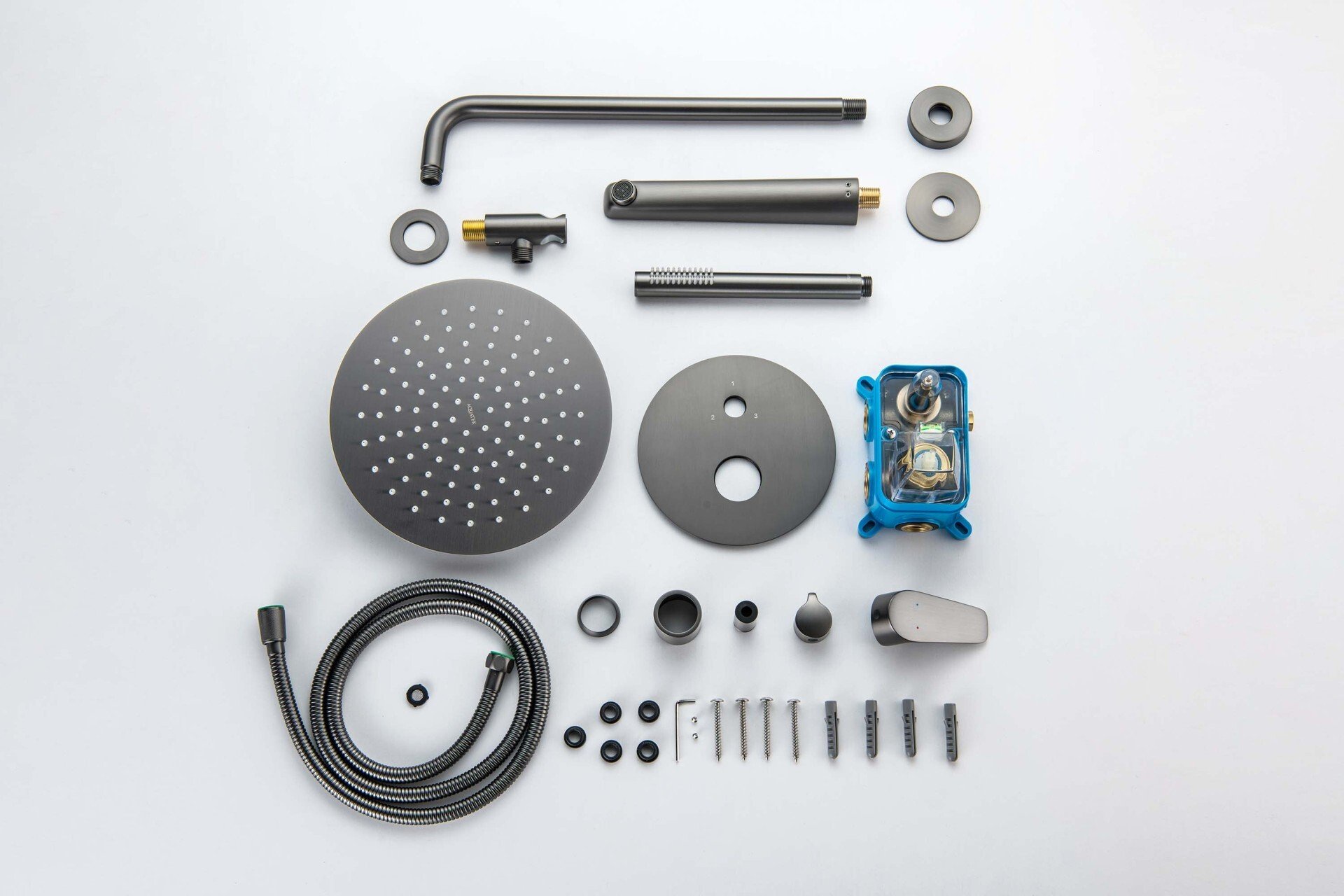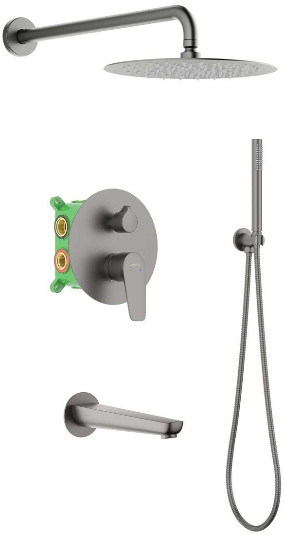 - Комплект душевой системы скрытого монтажа AQUATEK Бетта AQ1173BGM Set 4 в 1, оружейная сталь