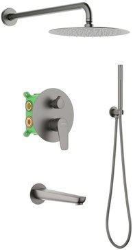 Душевая система AQUATEK Бетта AQ1173BGM Set 4 в 1 в цвете «оружейная сталь» — это комплект скрытого монтажа, включающий смеситель, верхний душ, ручной душ и излив. Система сочетает функциональность и современный дизайн, подходит для ванных комнат с скрытой подводкой.