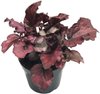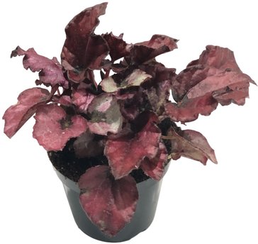 Декоративно-лиственное растение высотой до 40 см. Куст компактный, листья растут практически вертикально вверх. Листья крупные, в форме сердца, с ярко-бордовой окраской с серебристым оттенком. Ближе к краю листа цвет становится практически чёрным.