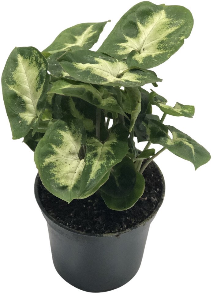 Неприхотливое, ядовитое, компактное растение. Листья напоминают наконечник стрелы, окрашены в кремово-зеленый цвет со светлой серединой. Листья могут немного меняться по мере взросления растения. В комнатных условиях цветет редко. Вырастает до 1,5 м в высоту. Растению необходимо светлое место с рассеянным светом, без попадпния прямых солнечных лучей на листья. Оптимальная температура + 18-24°C. Полив 1-2 раза в неделю, в жаркое время года необходимо опрыскивать листву два раза в сутки. В вегетативный период раз в 15 дней добавлять подкормку в воду для полива растений. При пересадке растения засыпать небольшой слой дренажа неа дно кашпо.