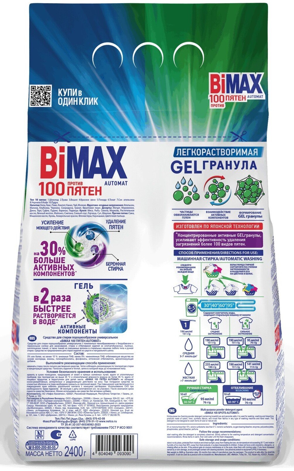 - Порошок стиральный д/машины-автомат BiMAX 2,4кг 100 пятен Automat