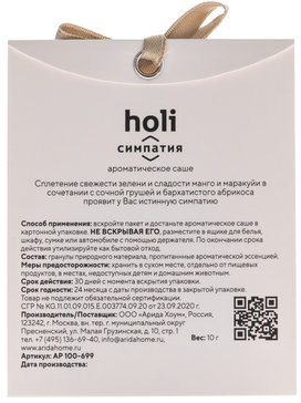 - Саше ароматическое Arida Home Holi Sympathy 10г