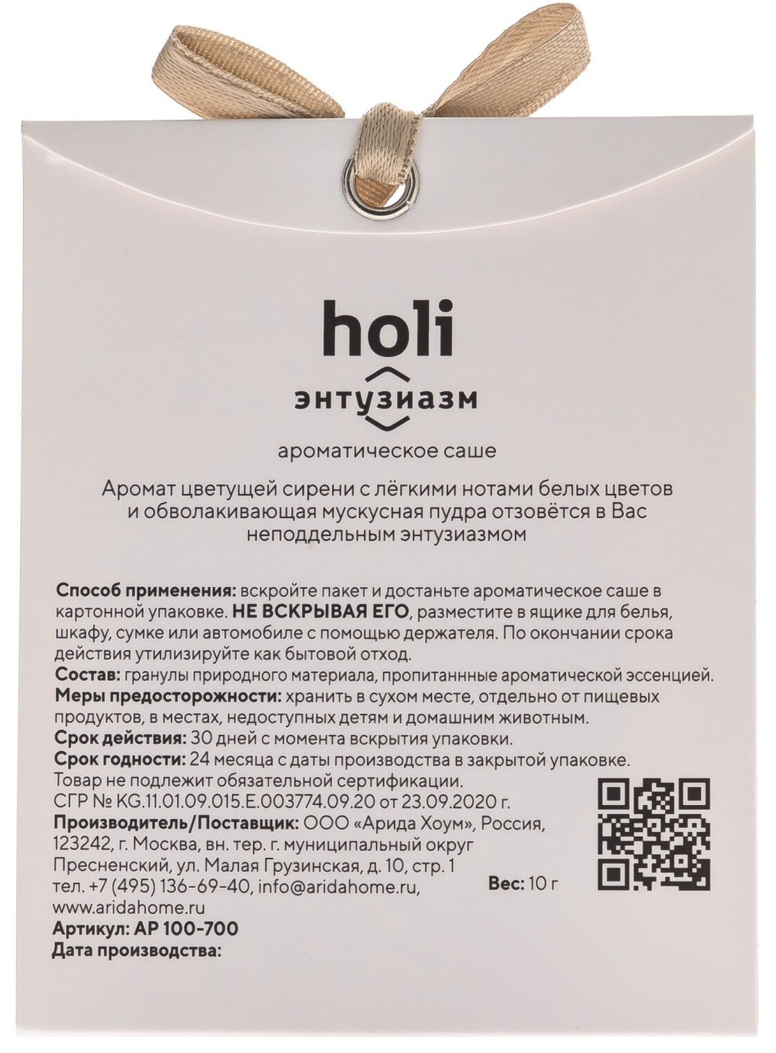 - Саше ароматическое Arida Home Holi Enthusiasm 10г
