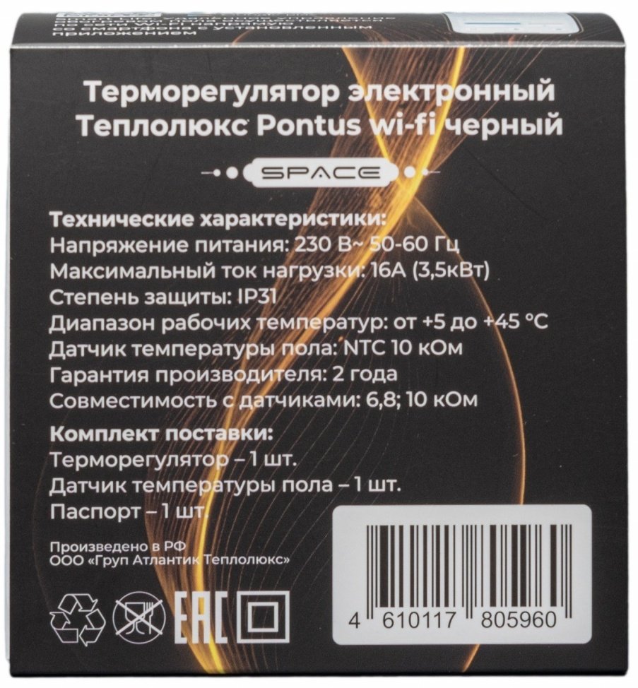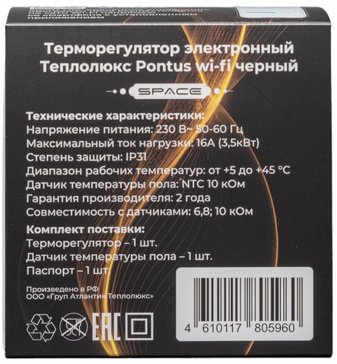 - Терморегулятор электронный Теплолюкс Pontus Space wi-fi черный