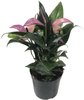 Декоративное вечнозеленое многолетнее растение. Листья крупного размера, темно-зеленые, глянцевые, с едва заметными прожилками. Цветки имеют насыщенный лиловый (или фиолетовый) цвет, часто с более темной каймой, и чашеобразную или ленточную форму, со временем оттенок может меняться на ярко-розовый. Освещение яркое, но рассеянное, требуется притенение от прямых солнечных лучей. Оптимальная температура в летний период +20-25°C, зимой +16-18°C, важно избегать сквозняков и резких перепадов температуры. Растение любит высокую влажность около 60%, для поддержания которой листья ежедневно опрыскивают водой, или устанавливают рядом увлажнитель воздуха. Полив умеренный, почва должна быть влажной, но не мокрой. Важно не допускать застоя воды. Подкормка в период активного роста каждые две недели, зимой растение не подкармливают.