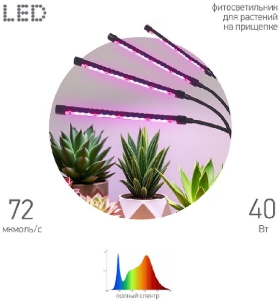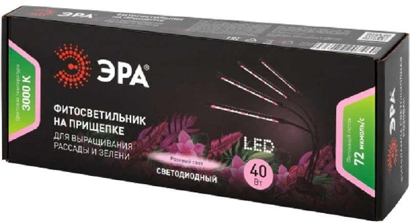 - Светильник для растений на прищепке ЭРА FITO-40W-АLED-RaL полного спектра 40 Вт