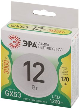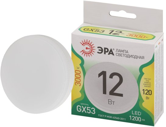 - Лампа светодиодная ЭРА GREEN LINE LED GX-12W-830-GX53 GL GX53 12 Вт таблетка теплый свет