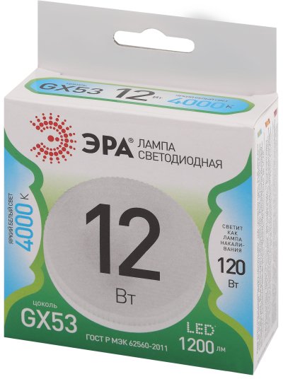 - Лампочка светодиодная ЭРА GREEN LINE LED GX-12W-840-GX53 GL GX53 12 Вт таблетка яркий белый свет