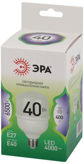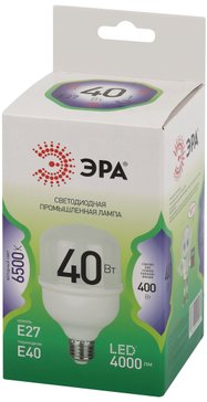 Светодиодная лампа ЭРА LED POWER T80-40W-865-E27/E40 GL серии Green Line — универсальный и энергоэффективный источник света. В комплекте предусмотрен сменный цоколь Е40, что позволяет использовать лампочку в различных помещениях. Цветовая температура 6500К излучает холодный белый свет без мерцаний. Высота лампы: 140 мм. Плафон в форме колокола обеспечивает равномерное распределение света. Лампочка ЭРА Е27 отличается низким энергопотреблением, долгим сроком службы и устойчивостью к перепадам напряжения. Работает от сети 220 В, эквивалентна 400 Вт лампе накаливания. Подходит для освещения жилых помещений, офисов, магазинов и производственных площадей.