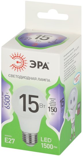 Светодиодная лампа ЭРА LED A60-15W-865-E27 GL серии Green Line — эффективное решение для основного освещения. Лампочка Е27 мощностью 15 Вт излучает холодный белый свет (6500K) без мерцания. Классическая колба A60 (груша) и стандартный цоколь E27 делают её совместимой с люстрами, бра, настольными и напольными светильниками. Высота лампы: 108 мм. Светодиоды потребляют меньше электроэнергии и служат значительно дольше традиционных ламп накаливания: до 30 000 часов. Работает от сети 220 В, эквивалентна 80 Вт лампе накаливания. Светодиодные лампы ЭРА подходят для жилых и коммерческих помещений и обеспечивают стабильное освещение.