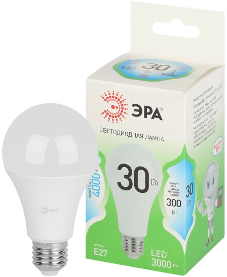 - Лампочка светодиодная ЭРА GREEN LINE LED A65-30W-840-E27 GL E27 30 Вт груша яркий белый свет
