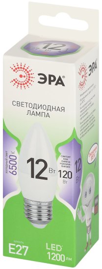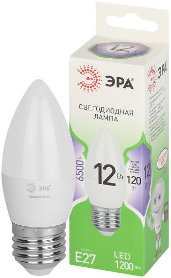 - Лампочка светодиодная ЭРА GREEN LINE LED B35-12W-865-E27 GL E27 12 Вт свеча холодный свет