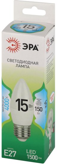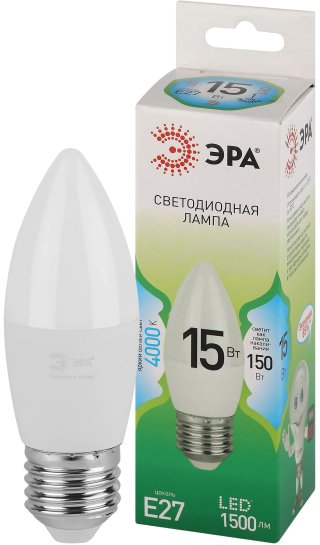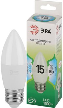 - Лампочка светодиодная ЭРА GREEN LINE LED B35-15W-840-E27 GL E27 15 Вт свеча яркий белый свет