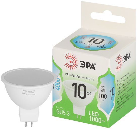 - Лампочка светодиодная ЭРА GREEN LINE LED MR16-10W-840-GU5.3 GL GU5.3 10 Вт софит яркий белый свет