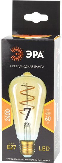 - Лампочка светодиодная ЭРА F-LED ST64-7W-824-E27 spiral gold E27 / Е27 7Вт филамент золотистый теплый белый све