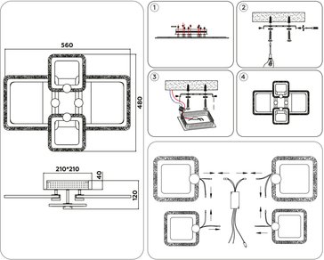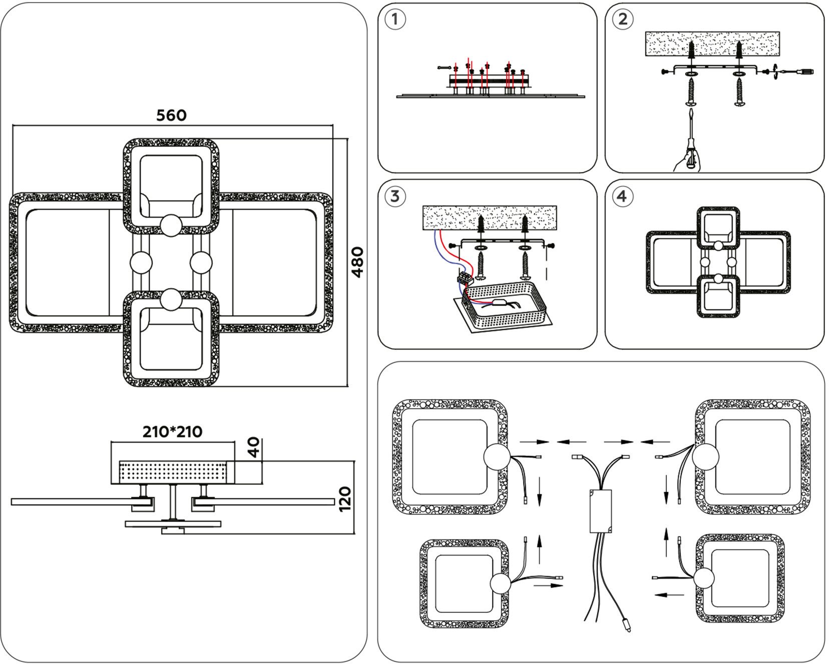 - Светильник светодиодный потолочный с пультом FA5309/2+2 WH белый 3000K-6400K 62W 560х480х120мм