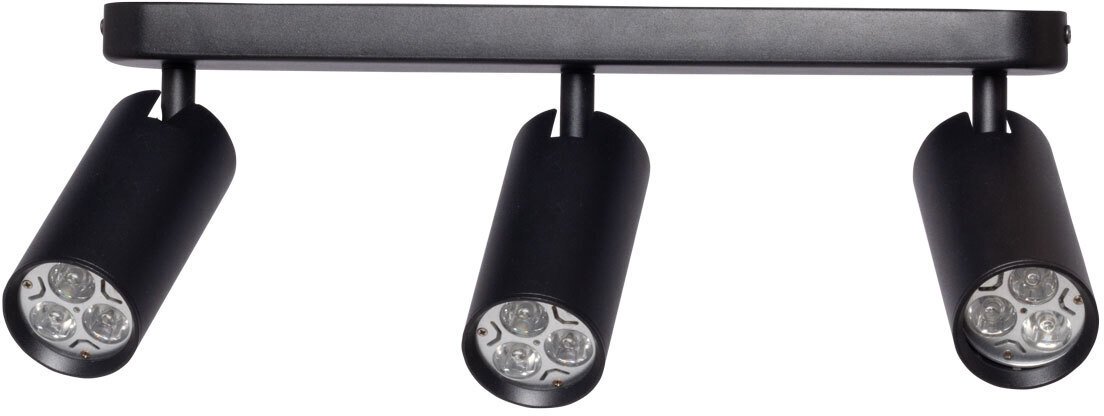 Спот «Прайм» с тремя лампами по 50 Вт (цоколь GU10) в чёрном металлическом исполнении — это стильное и функциональное решение для освещения жилых и офисных помещений. Его лаконичный дизайн в стиле «техно» привлекает минимализмом и чёткими линиями: три цилиндрических плафона закреплены на общей металлической планке. Чёрный цвет корпуса и плафонов придаёт светильнику современный и немного строгий вид, который легко впишется в интерьер в стиле лофт, хай-тек или минимализм. Особенность этого спота — возможность регулировать направление каждого плафона. Это позволяет создавать интересные световые сценарии: выделять определённые зоны в комнате, акцентировать внимание на элементах декора или обеспечивать равномерное освещение пространства. Компактные размеры и универсальный дизайн делают его идеальным выбором для: - гостиных и спален; - кабинетов и кладовых; - коридоров и прихожих.