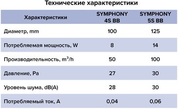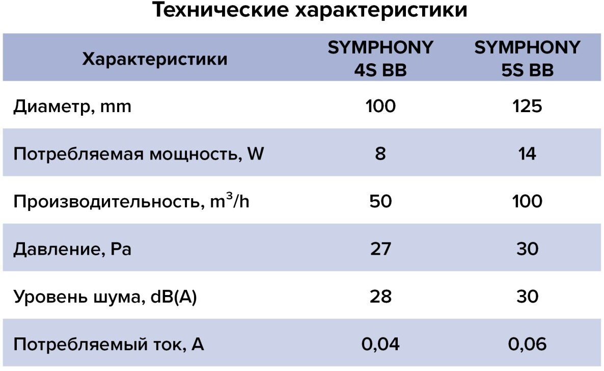 • SYMPHONY 4S BB оснащен двигателем на шарикоподшипниках, который позволяет устанавливать устройство как в стену, так и в потолок. А защита от перегрева автоматически выключит вентилятор при нагреве обмотки двигателя свыше +130 °С. Мотор не требует дополнительного обслуживания и гарантирует до 40 000 часов работы.
