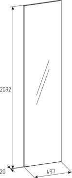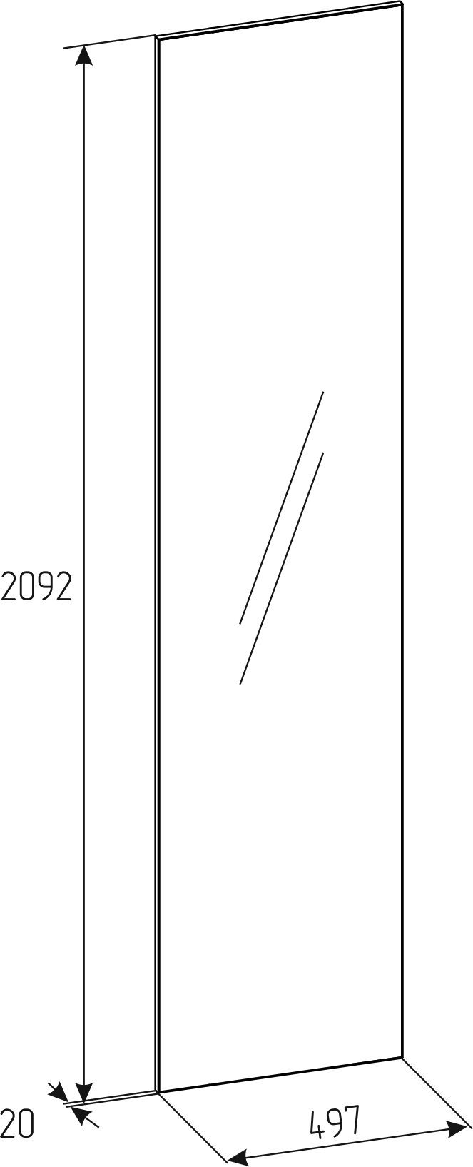 Дверь подойдёт для шкафов шириной 50 см или 100 см (для 100‑сантиметрового корпуса нужны две двери) и высотой 216 см. Она изготовлена из надёжной ЛДСП (16 мм), дополнена 4‑миллиметровым зеркалом и защищена ударопрочной кромкой ПВХ (2 мм) — это гарантирует долговечность и простоту ухода.