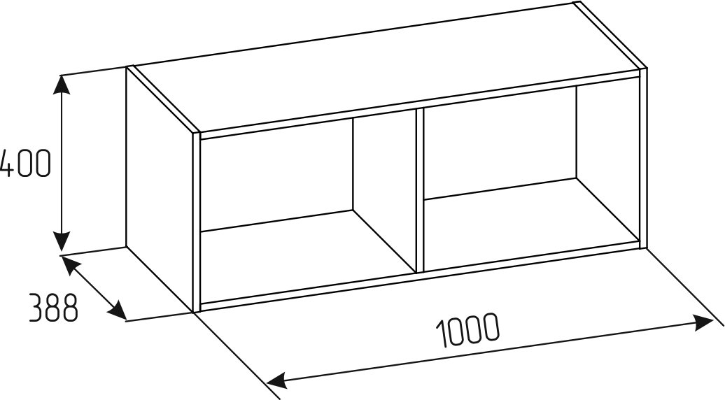 Корпус антресоли РУМ 100 см (100 × 38,8 × 40 см) поможет эффективно использовать пространство до самого потолка. Он устанавливается на высокий корпус (216 см или 236 см), создавая цельную конструкцию. Антресоль надёжно крепится к стене — навесы уже в комплекте.