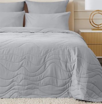 Серое стёганое покрывало «ультрастеп» размером 200×215 см — практичное и стильное дополнение к интерьеру спальни. Его лаконичный дизайн с волнообразной стёжкой придаёт кровати аккуратный и уютный вид, а нейтральный серый оттенок легко сочетается с разными цветовыми решениями комнаты. Выполнено из мягкой микрофибры (100% полиэстер), сочетает в себе комфорт и долговечность, подойдёт для повседневного использования.