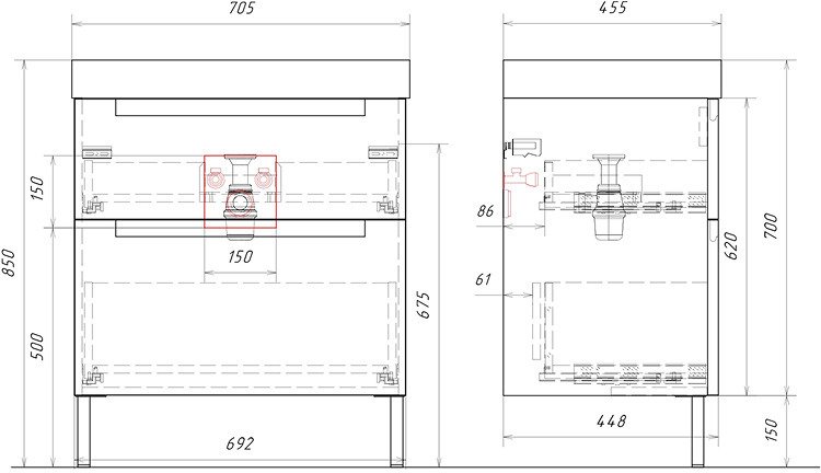 - Тумба напольная Ванкувер 70,5см матовый белый с раковиной Гремми в комплекте