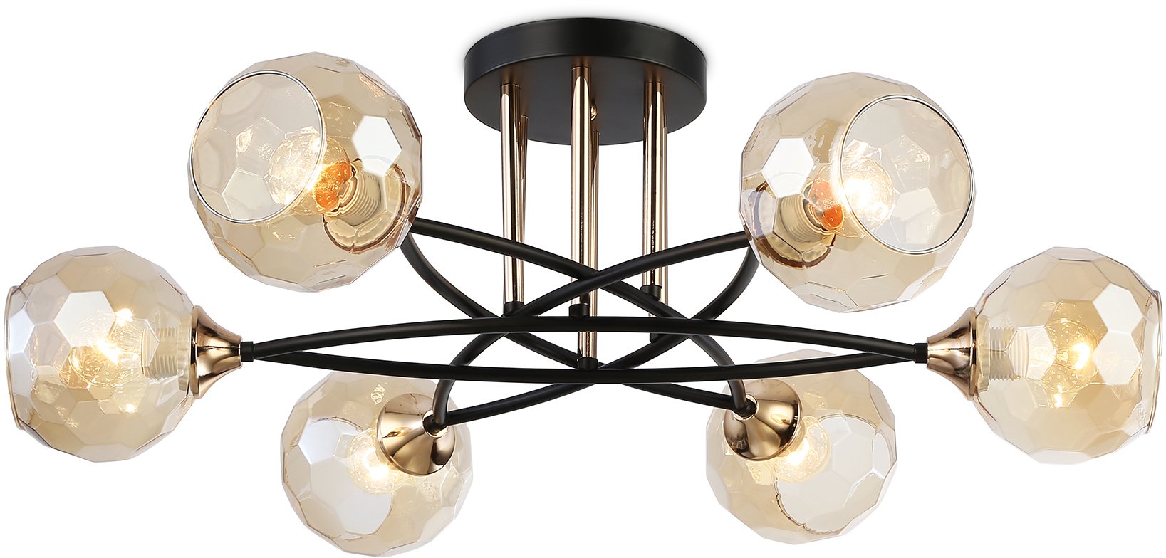 - Люстра на штанге TR3084/6 BK/GD/TI черный/золото/янтарь E27/6 max 60W D700х250