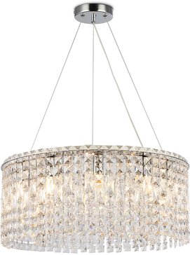 Подвесная люстра с хрусталем из коллекции TRADITIONAL TR5450 представлена в стиле неоклассика и оснащена десятью цоколями Е14. Светильник выполнен из металлического основания цвета "хром" с прочными тросами, хрустальных плафонов и будет прекрасным дополнением в любом помещении.