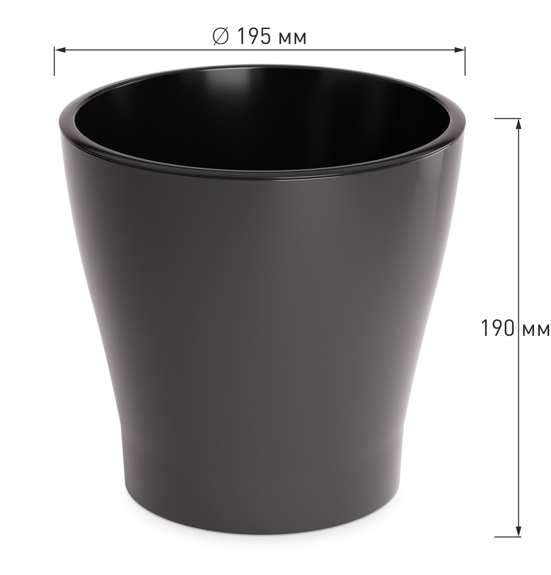 - Кашпо пластиковое Лея d19,5см h19см v3,6л, графитовый, с вкладкой