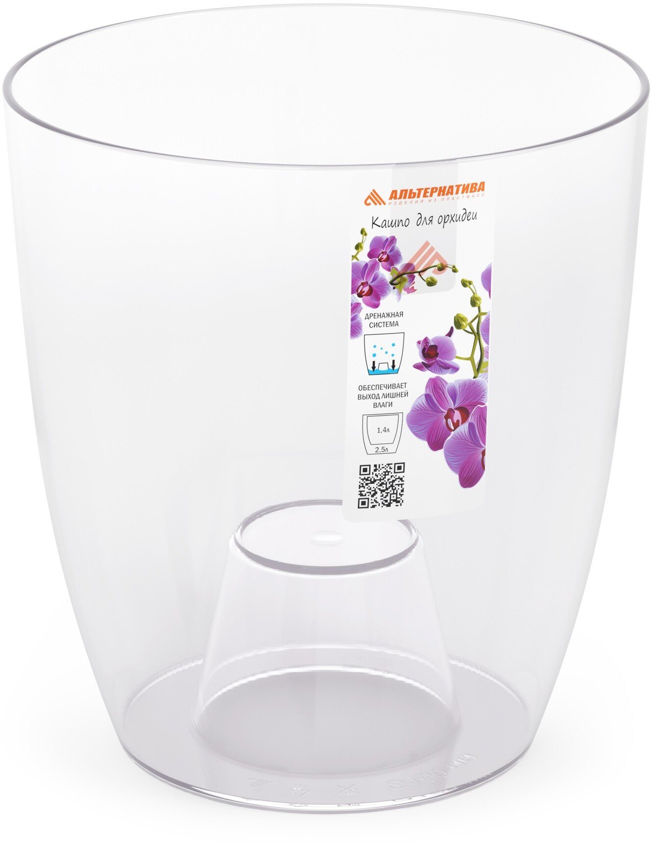 - Кашпо пластиковое д/орхидей d16см h17,5см v2,5л, прозрачный